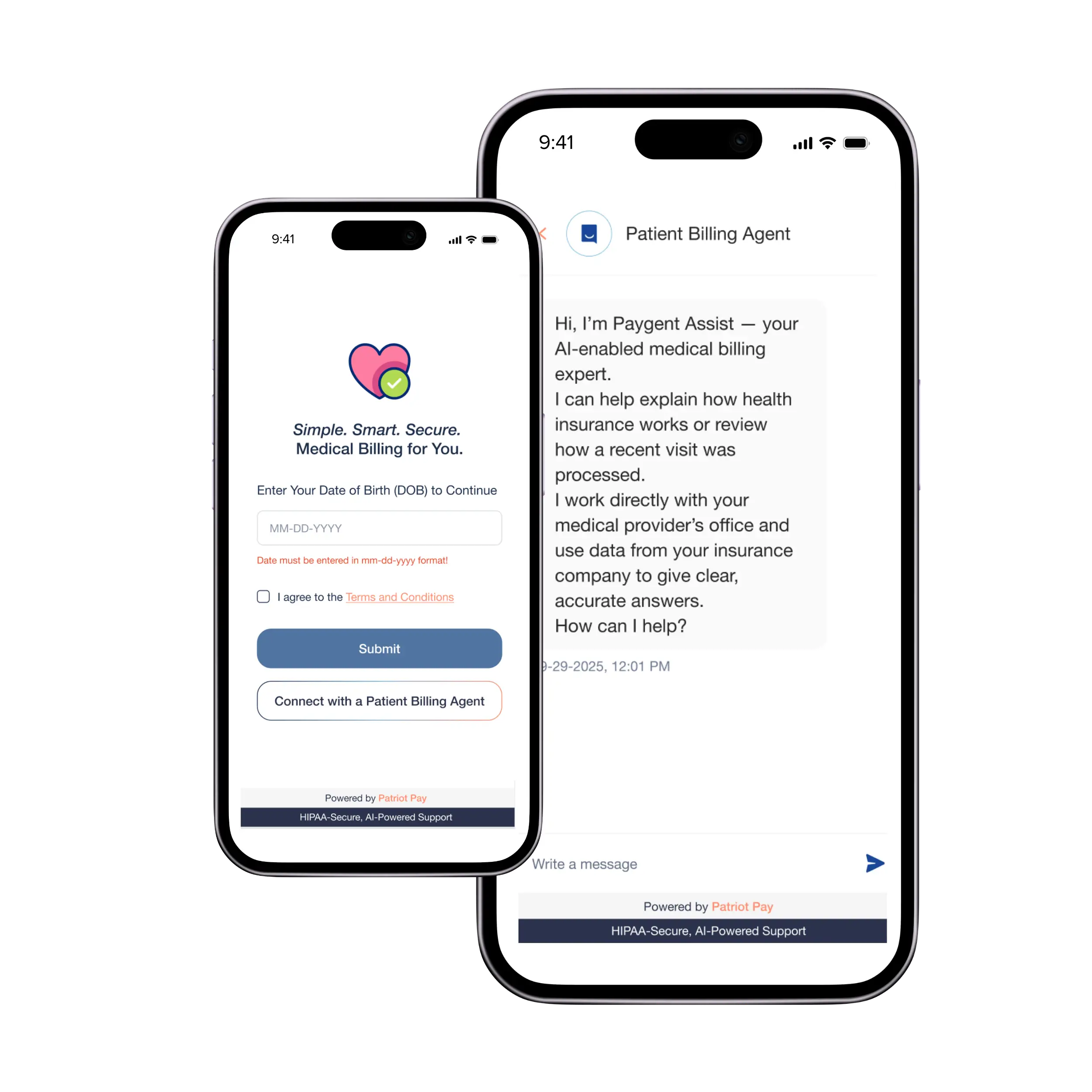 Welcome to Patient Billing Intelligence. The AI-driven way to engage your patients through a modern experience—no apps to download, no portals to remember, and no friction. Give your patients real-time answers, modern payment options, and flexible plans—all without switching your practice management software.